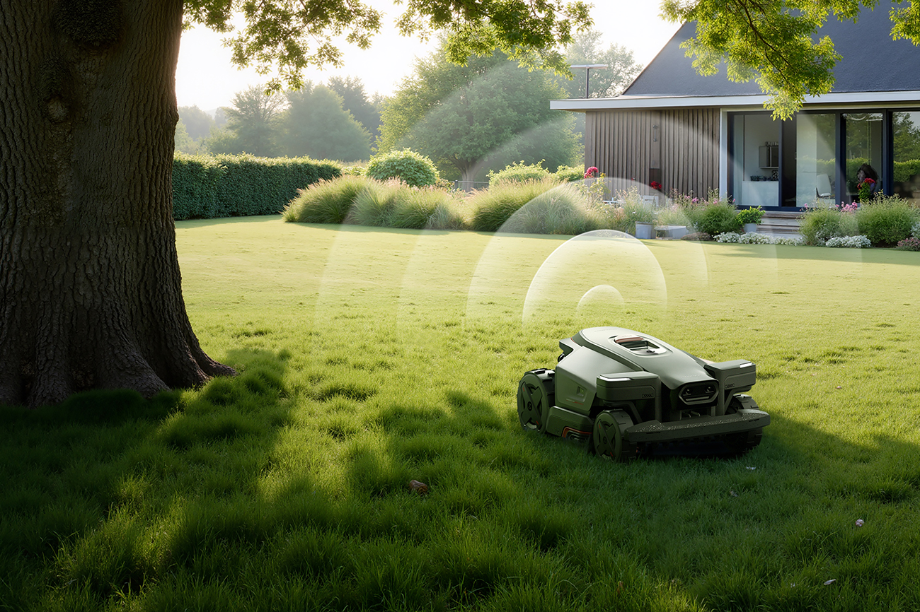 Během sečení spolehlivě rozpozná statické i pohyblivé překážky, plynule je objíždí, bezpečně mění směr a pokračuje bez zbytečných zastavení.