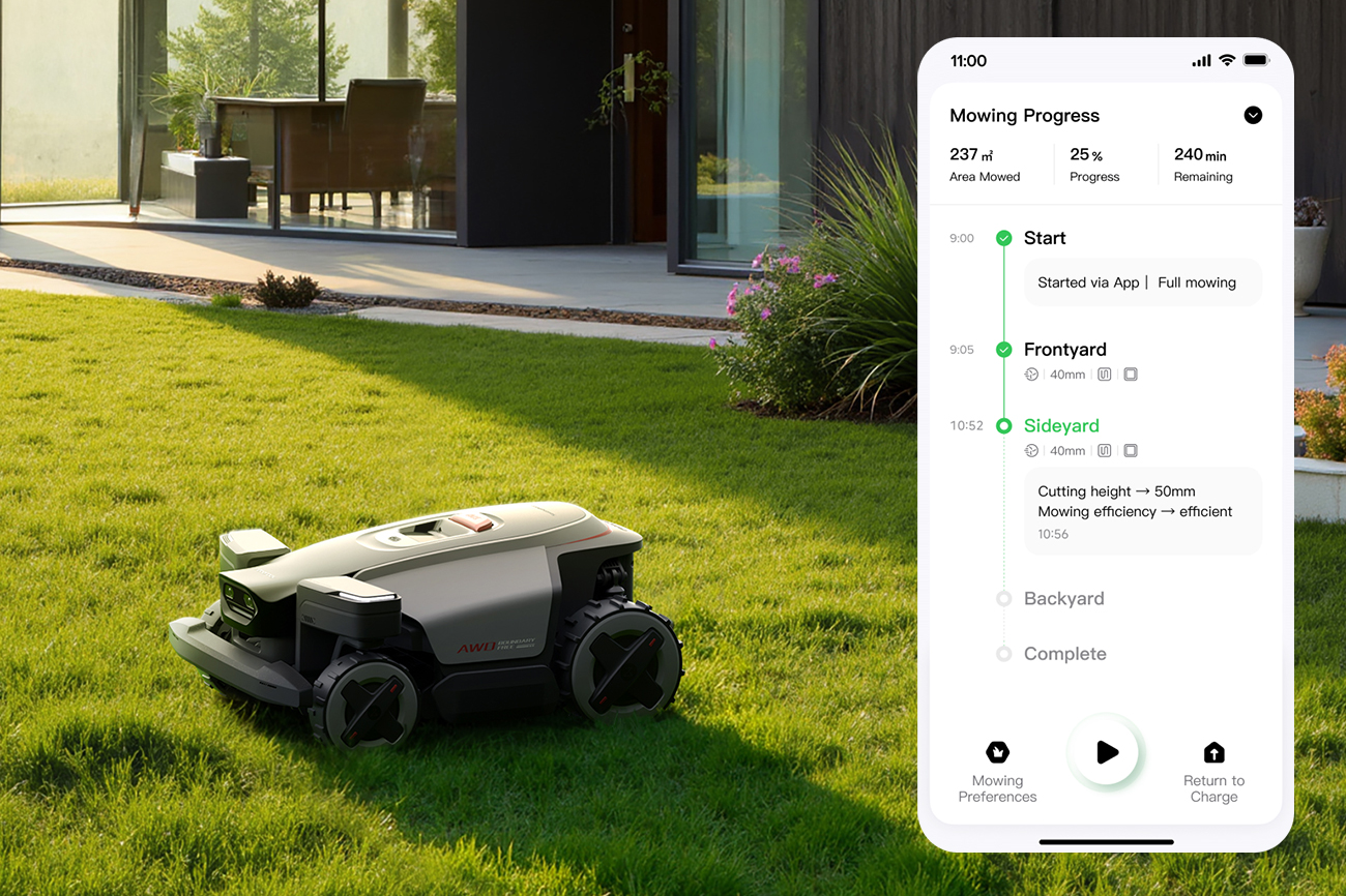 V aplikaci Roborock můžete kdykoli a odkudkoli sledovat průběh sečení, důležité milníky i aktuální odhad dokončení.